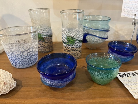 これもまた魅力的な、沖縄独特の琉球ガラスのグラスなどもあります。