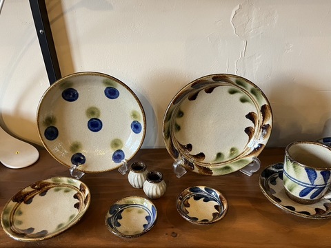 お店の扉を開けると、右側には沖縄の陶器、やちむんが並びます。その独特の風合いや色は、どれもこれもが南国の雰囲気たっぷりな魅力的なもの、自分も沖縄へ出かける度に購入して、自宅で彼の地を楽しんでます。