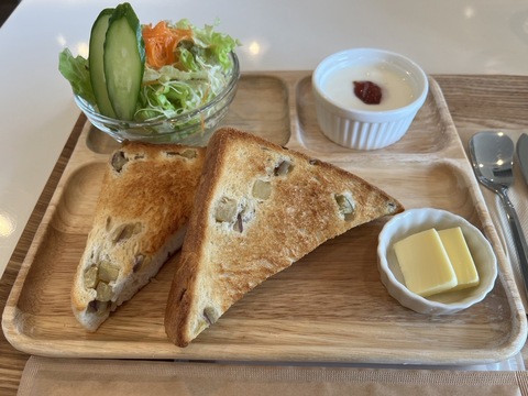 さて、ふれあいマルシェあまのですが、ブルーシールアイスだけでは無くて、平日はCafeを併設して営業しており、つけパンにパングラタンやワッフルなどと言ったメニューにドリンク各種、お邪魔した際に頂いたのはお昼だと言うのにモーニング、9:00~14:00まで、終日モーニングと言う面白い?営業をしています。
