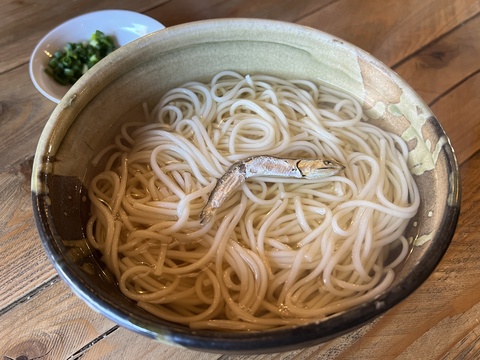 正直、素麺の釜揚げなどふにゃふにゃの腰なし麺を想像しましたが、この喉越しに香り、美味い!